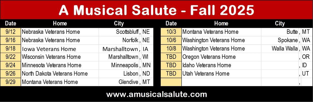 Thank you all so much for supporting the 2025 Spring Tour. All went very well. We have most of the 2025 Fall Tour scheduled and will share that as soon as it's ready.
